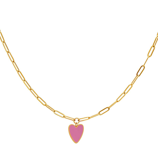 Collier en acier inoxydable avec cœur coloré.