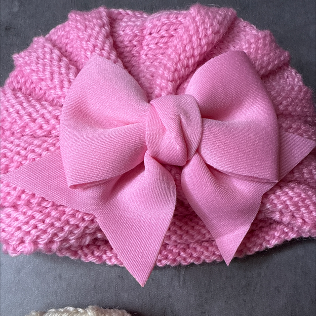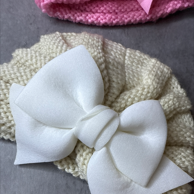 Ici ce turban effet laine est décliné avec son noeud viscose.