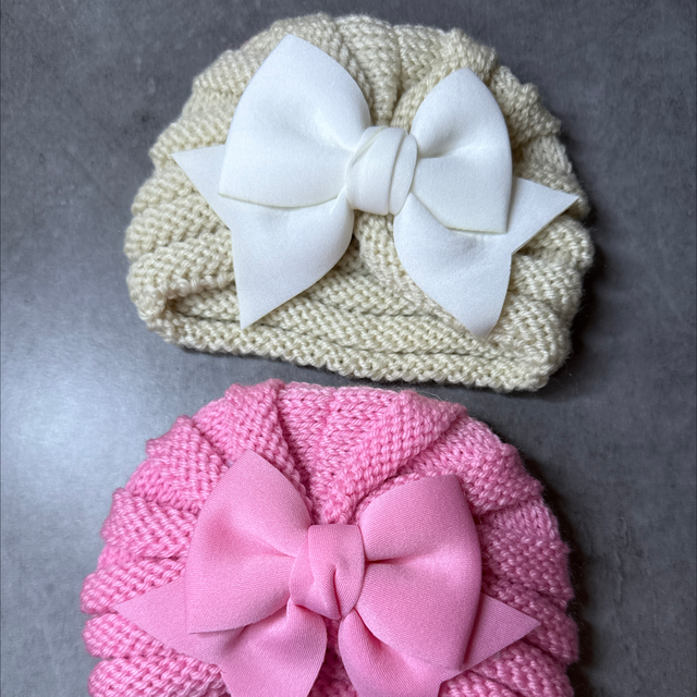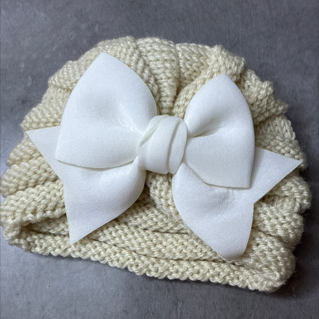 Ici ce turban effet laine est décliné avec son noeud viscose.